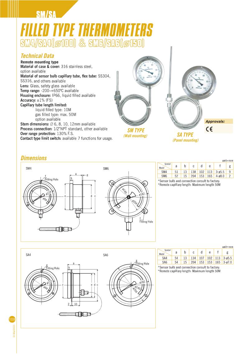 Filled Thermometers - SH4/SH4-QS & SH6/SH6-QS Serie